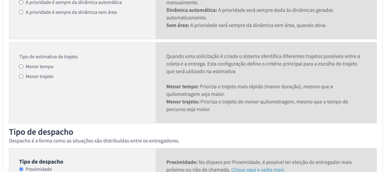 Configurações > Gerais > Despacho