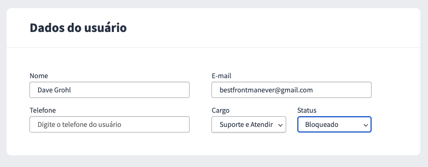 Após salvar, o usuário voltará ao status “Inativo”, podendo realizar o login novamente.