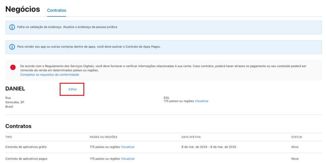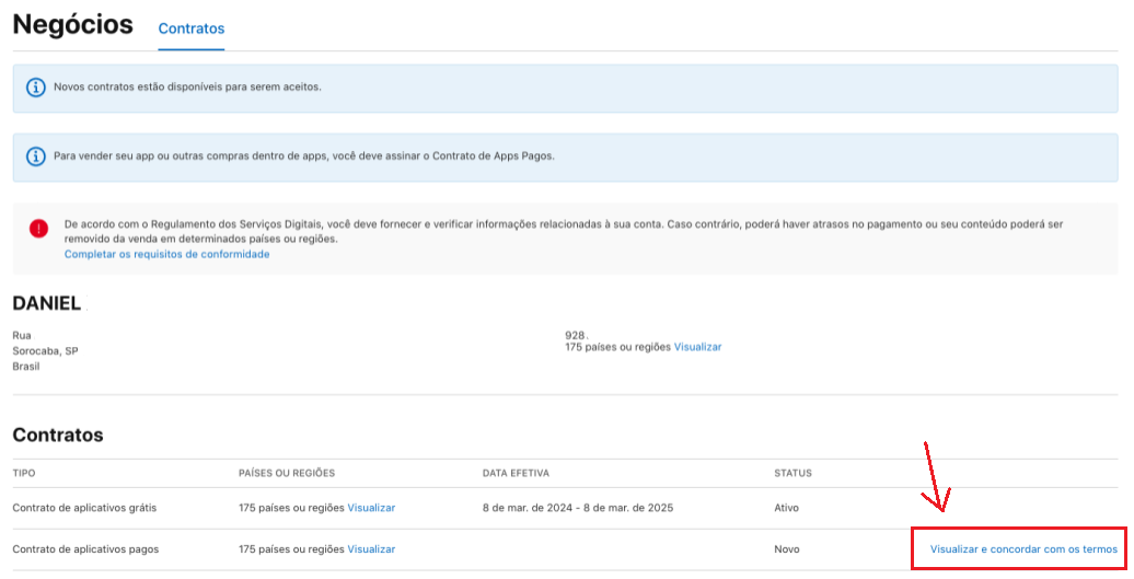 Passo 2: Contrato de Apps Pagos e Ajuste de Endereço