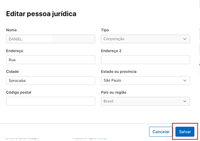 Na mesma página de Negócios/Business, procure pelo seu endereço.