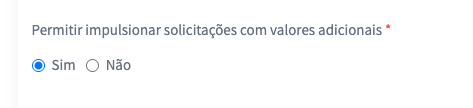 A configuração para acrescentar valor à solicitação pode ser acessada no caminho: