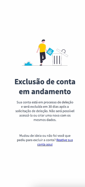 O que é a reativação de conta aguardando exclusão