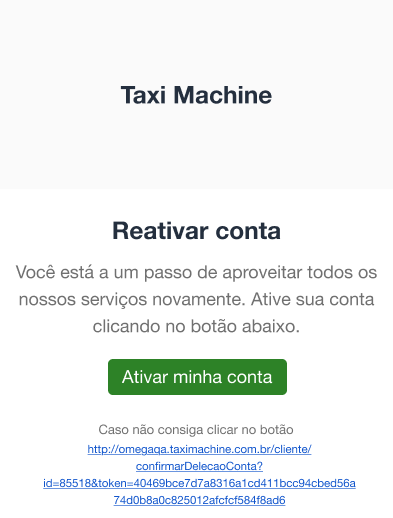 - Durante esse período, o passageiro pode acessar o aplicativo e reativar a conta utilizando os mesmos dados