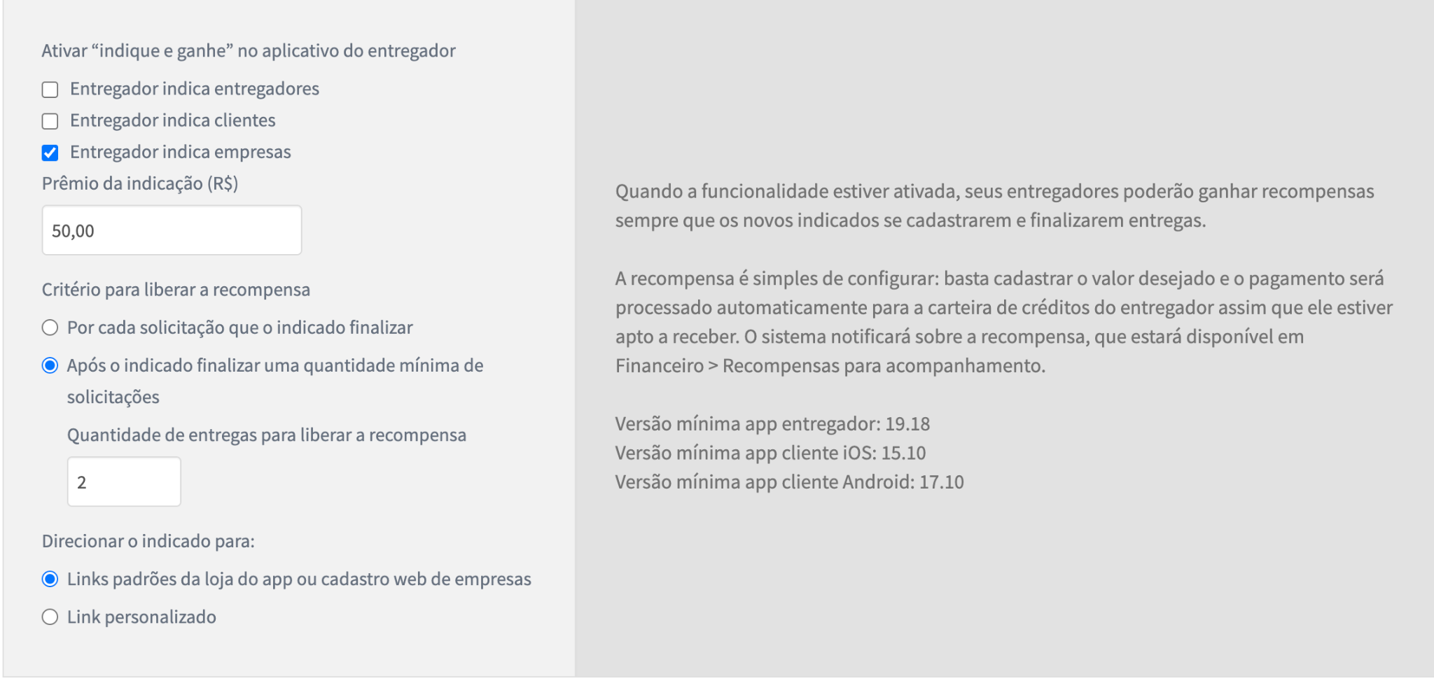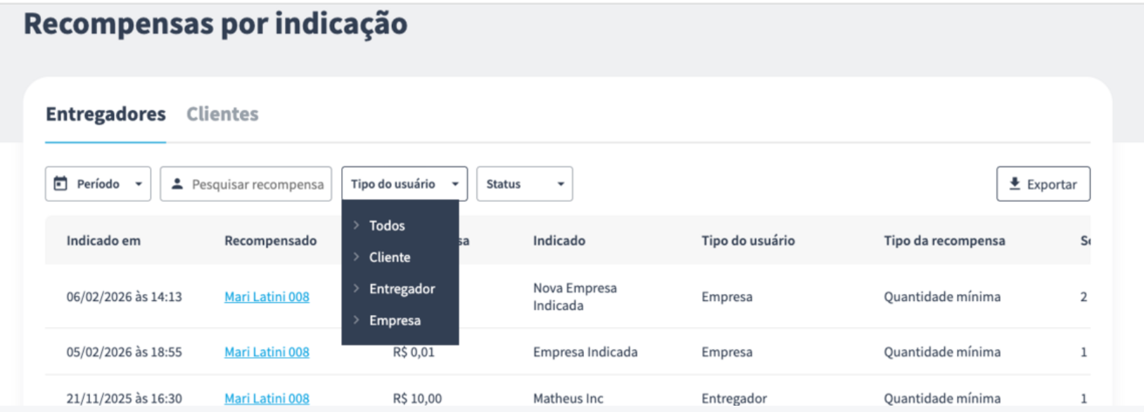 Quando uma empresa indicada passa a utilizar a plataforma conforme as regras do programa de indicações, o entregador responsável pela indicação recebe a recompensa correspondente, da mesma forma que já acontece nas demais modalidades de indicação. Essa dinâmica incentiva a divulgação do serviço e contribui para o crescimento da base de empresas parceiras.