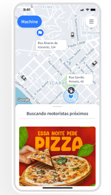 Campanhas por Solicitação permitem que a central monetize cada corrida ao exibir banners publicitários no aplicativo do passageiro, desde o momento da solicitação até a chegada ao destino.
