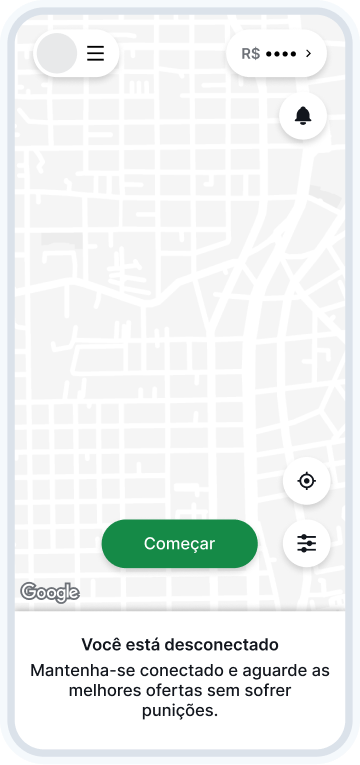 Quando o condutor estiver desconectado, o aplicativo exibirá a mensagem configurada pela central.