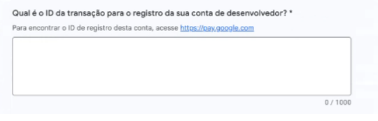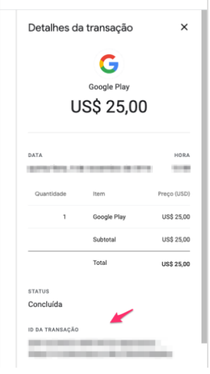 4. Para encontrar o ID da Transação pedido no próximo campo, é preciso acessar esse site com o mesmo e-mail da Conta Google Desenvolvedor: https://myaccount.google.com/payments-and-subscriptions
